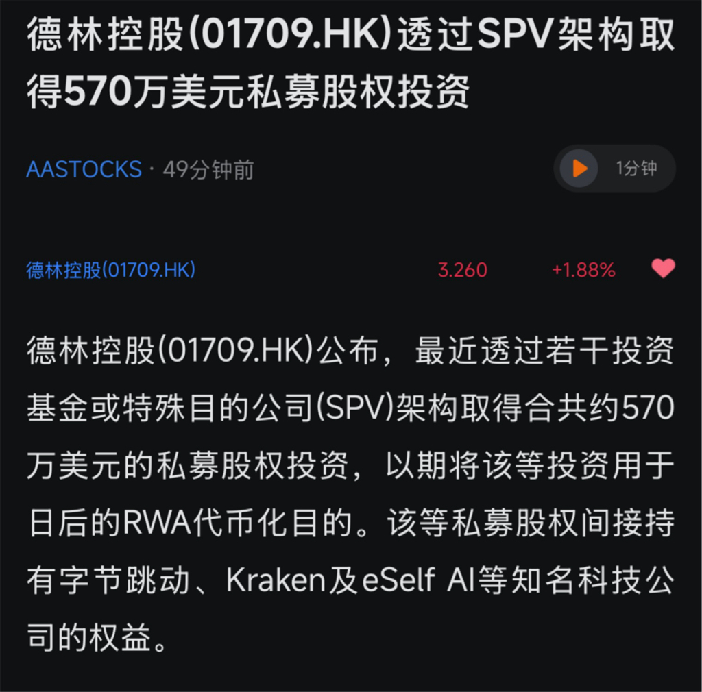 $德林控股(HK|01709)$ 陈宁迪太有本事了,竟然通过这种方式持股字节跳动后进行代币分派,因为市场上没有任何一家公司持有字节的股份!!