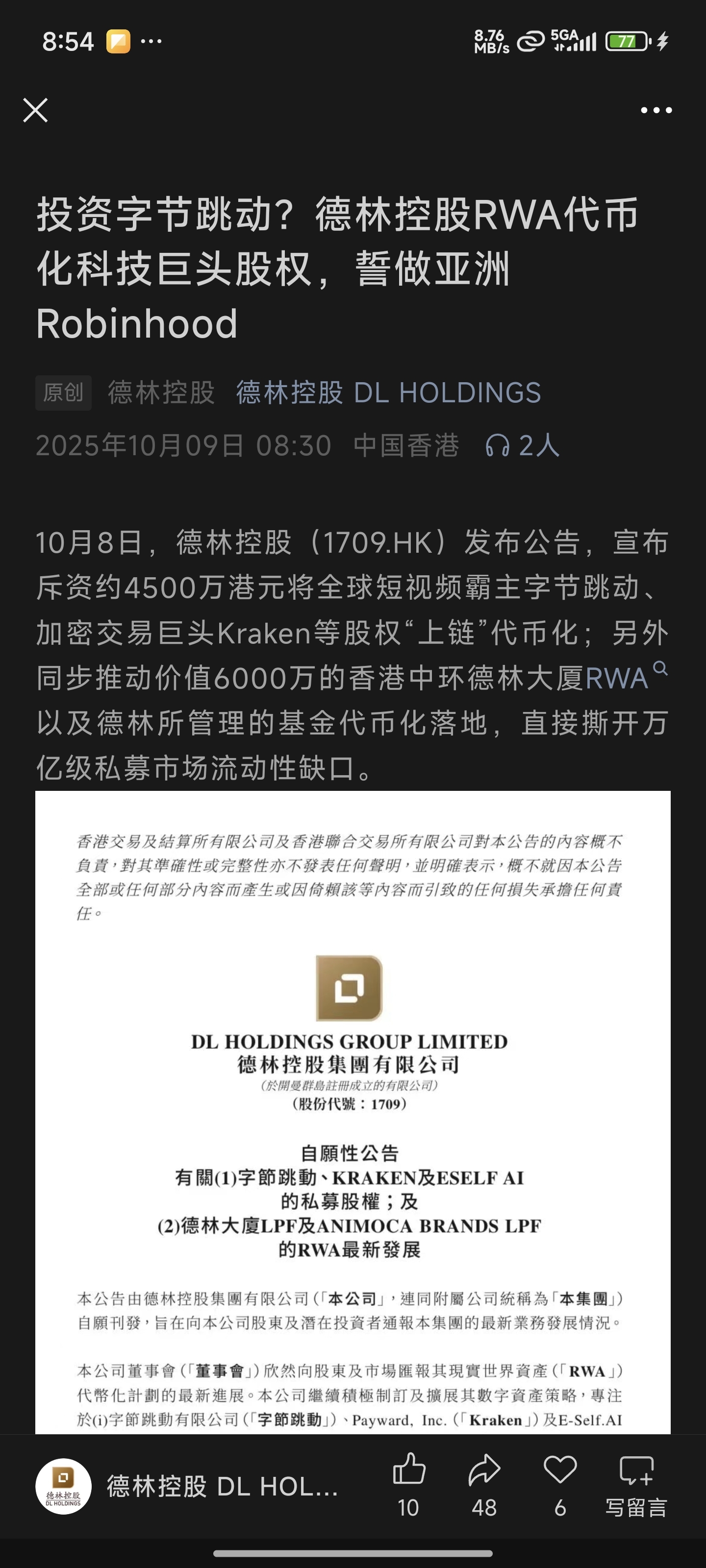 $德林控股(HK|01709)$ 人没有梦想和咸鱼有什么两样