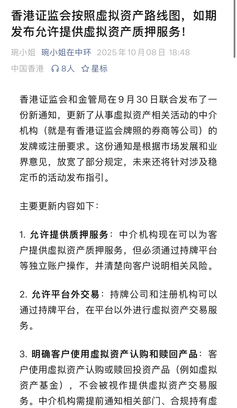 香港政府还是支持虚拟资产的,摸索的过程慢了点,但也只有香港能做这件事了。你看新加