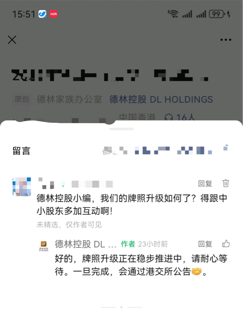 $德林控股(HK|01709)$ 预计明日牌照升级SFC公告!