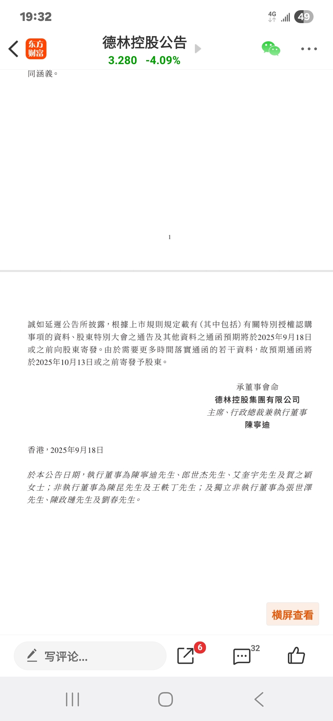 $德林控股(HK|01709)$ 这个又要延迟吗