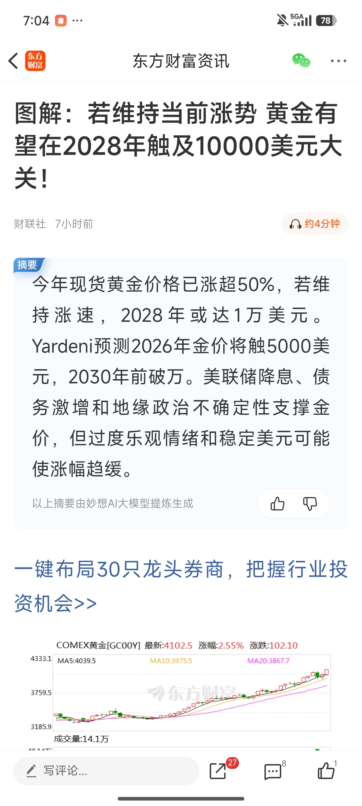 $德林控股(HK|01709)$ 这是目前为止关于黄金价格最疯狂的预测了。那比特币会是多少呢?按照黄金1倍~1.5倍来算,会是20~25万美元吗?