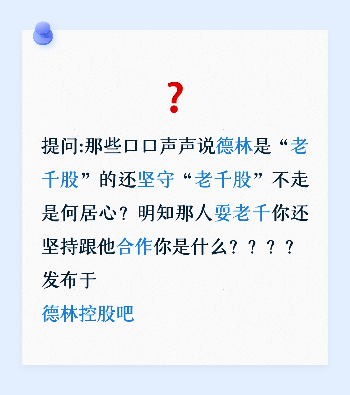 温馨提示: 1.根据《证券法》规定,禁止编造、传播虚假信息或者误导性信息,扰乱证券市场;2.用户在本社区发表的所有资料、言论等仅代表个人观点,与本网站立场无关,不对您构成任何投资建议。用户应基于自己的独立判断,自行决定证券投资并承担相应风险。《东方财富社区管理规定》
