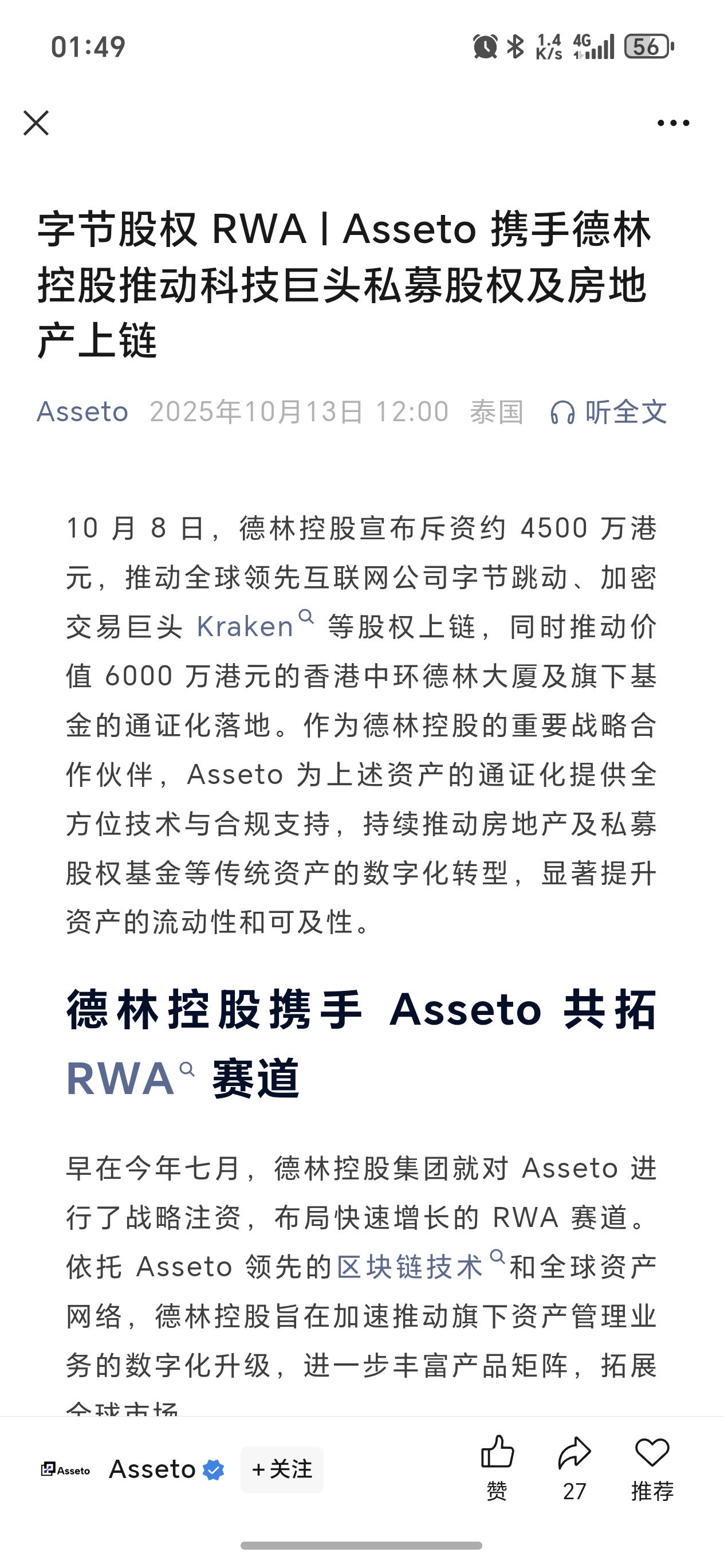 $德林控股(HK|01709)$ 对asseto的注资已经发挥作用,不知道为什么股价还会无量下跌