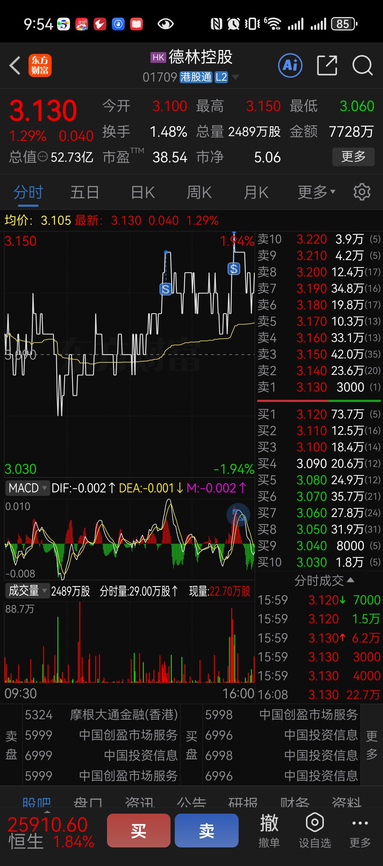 $德林控股(HK|01709)$ 今天没加仓,只卖出了昨天3.1买的筹码,希望你明天的表现能让我后悔