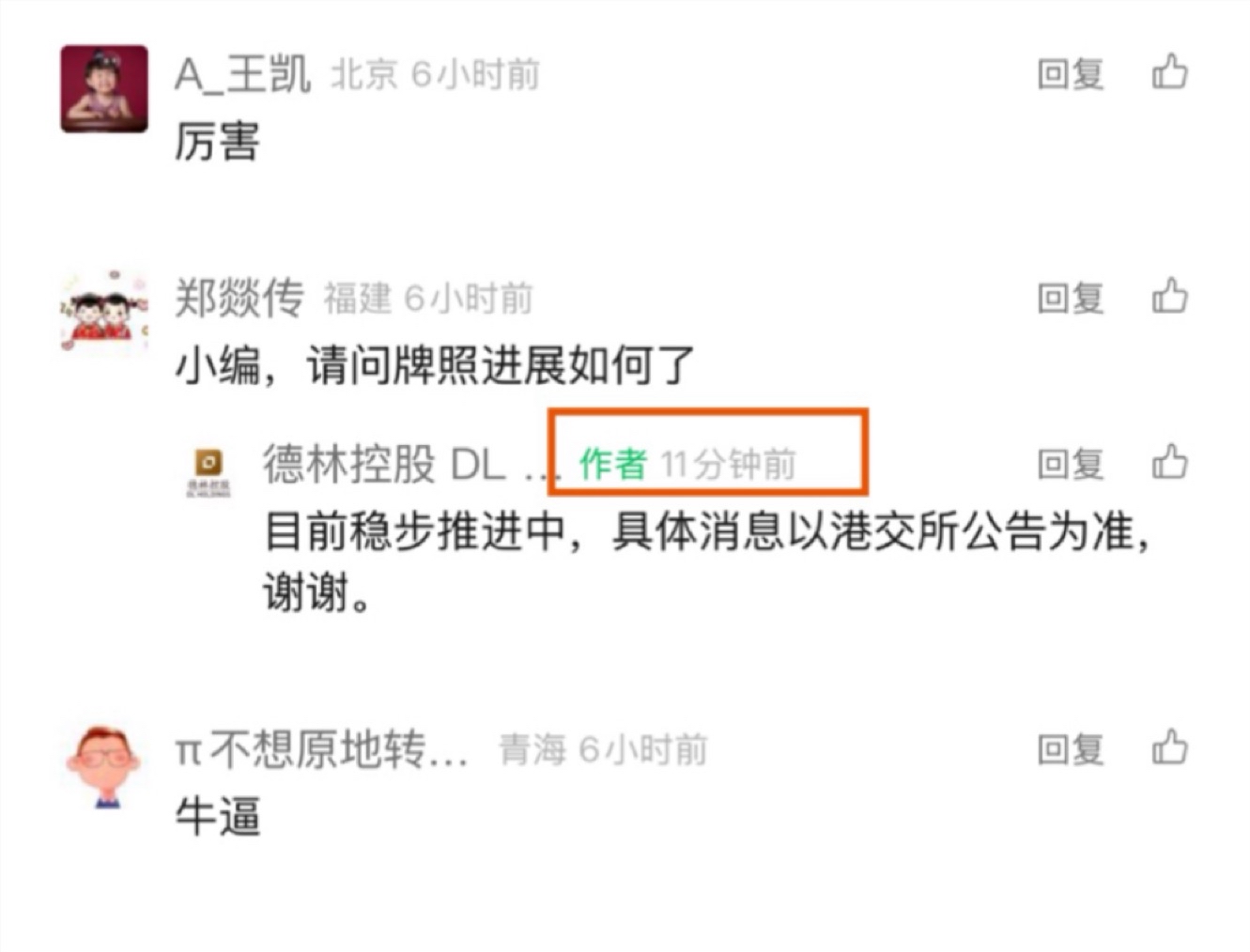 德林官微周五回复网友评论:目前牌照申请稳步推进中,具体消息以港交所公告为准。