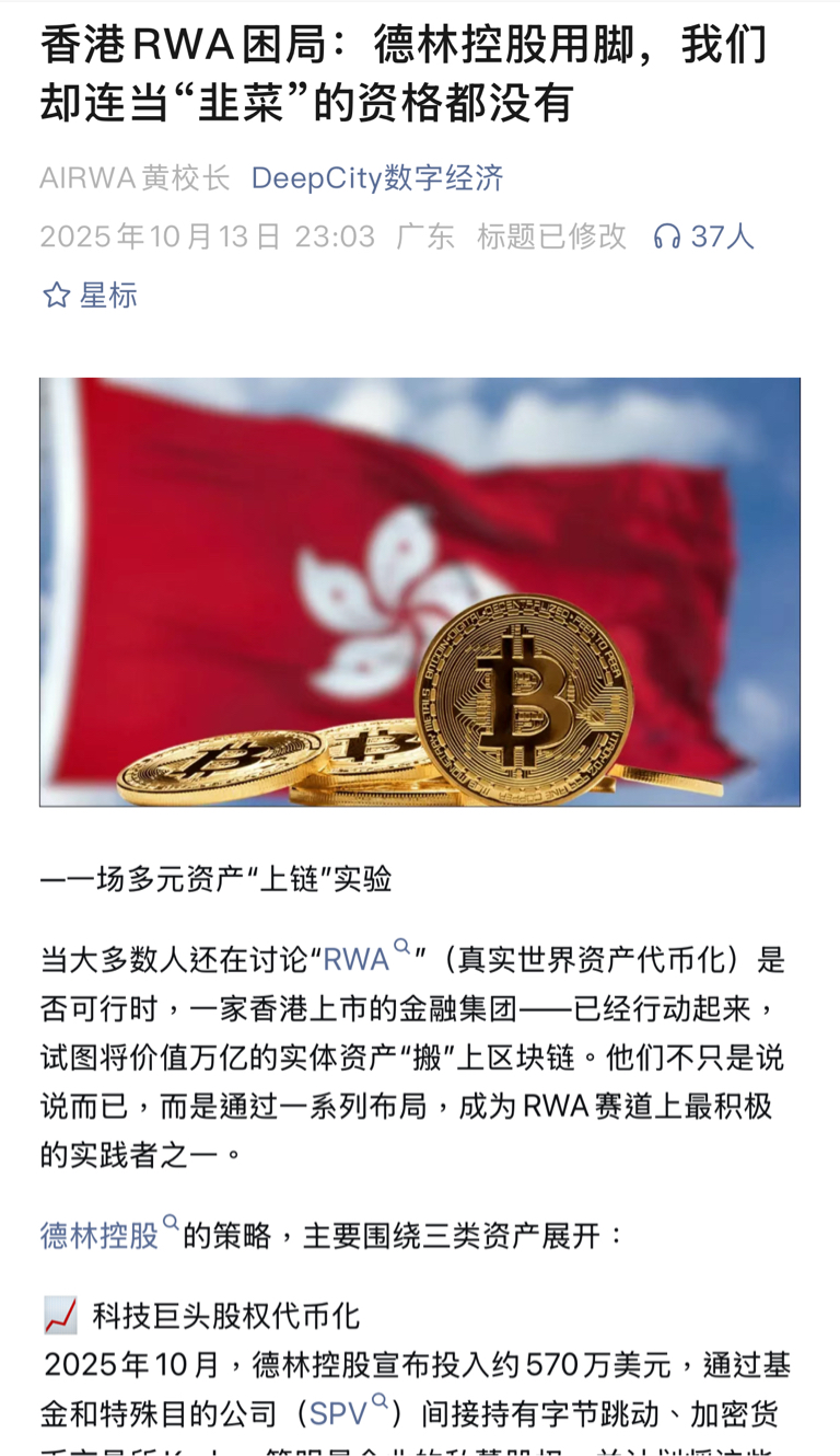 德林RWA第一股,一步一步用事实来证明,预计明天股价涨8%,未来翻番