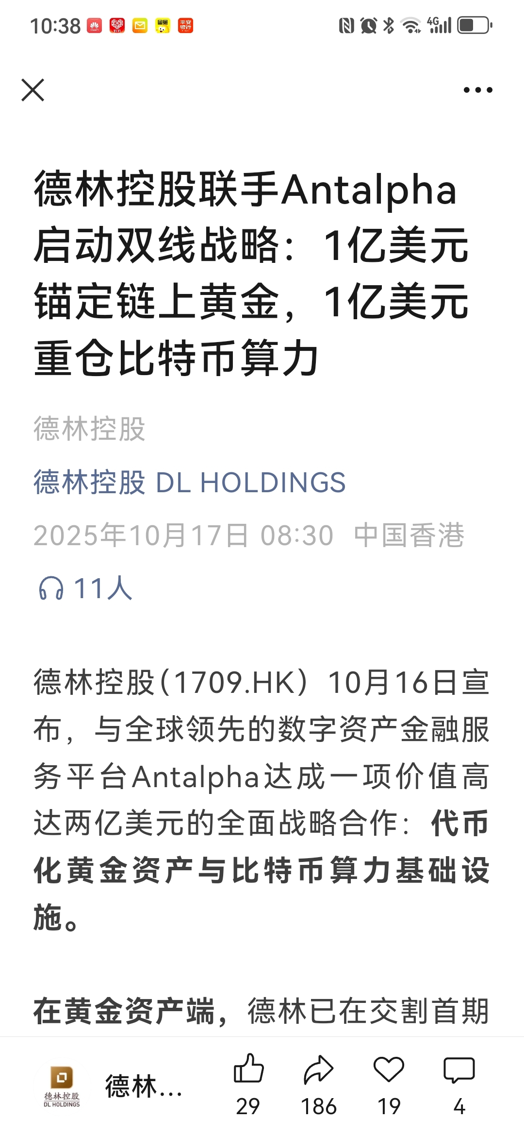 $德林控股(HK|01709)$ 德林终于迎来了它的时代,以数字货币黄金与数字游民签证构建的全球零售与支付的全球“央行”体系已经来临。历史潮流,势不可挡,遇神杀神遇佛杀佛。