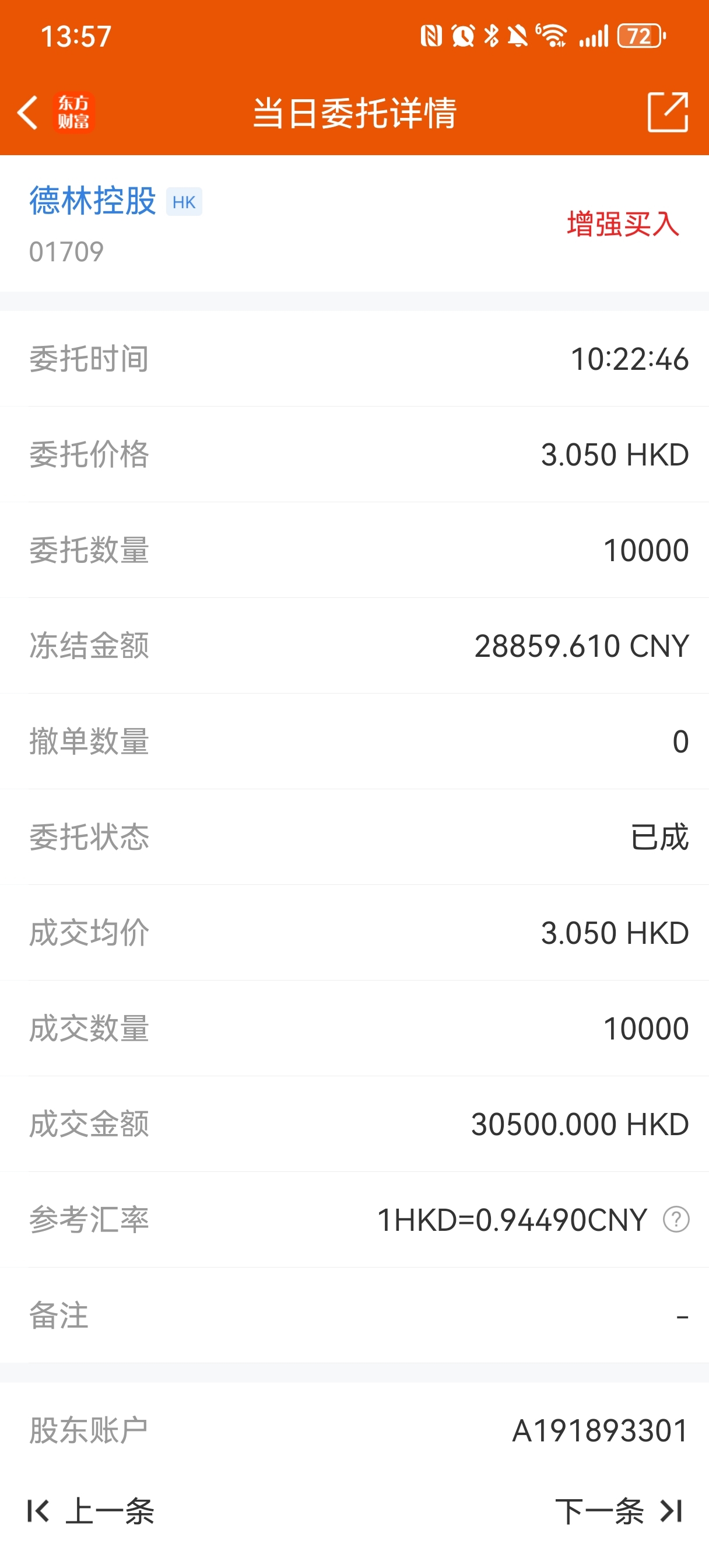 $德林控股(HK|01709)$ 配售一万股,请知悉
