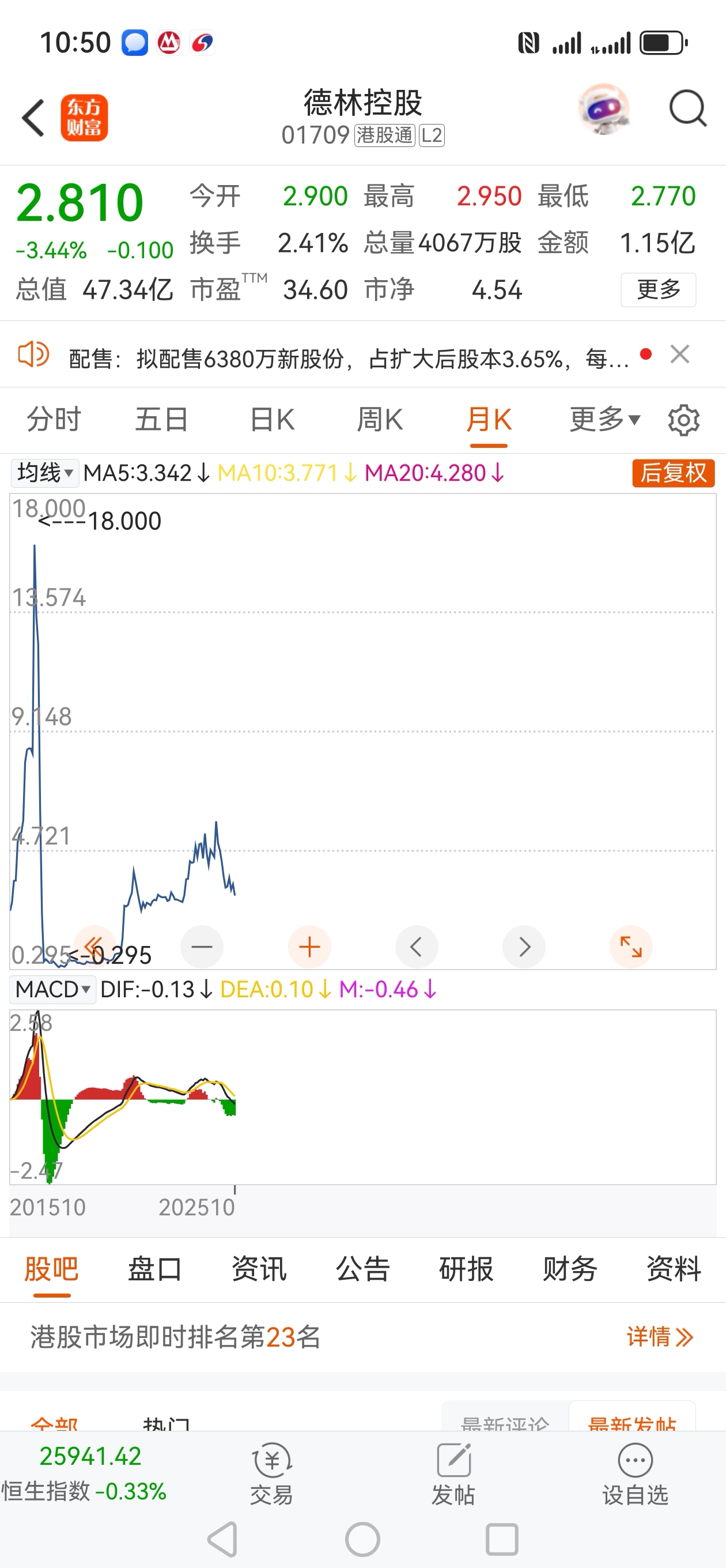 $德林控股(HK|01709)$ 几毛钱一股的老千港股通驴子天天叫牌照会翻几番如果是先跌到几毛钱再涨到几元一股你能拿住