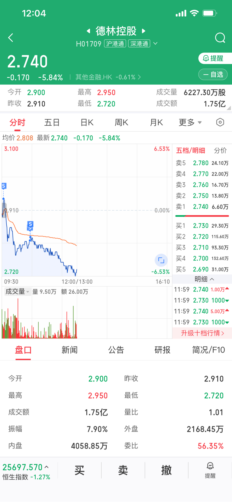 $德林控股(HK|01709)$ 做人不能太贪心啊,开盘红的时候卖了一半,就一半格局,结果格局又被埋了,幸好没有头铁死扛到底,这根本没有底啊,认栽了