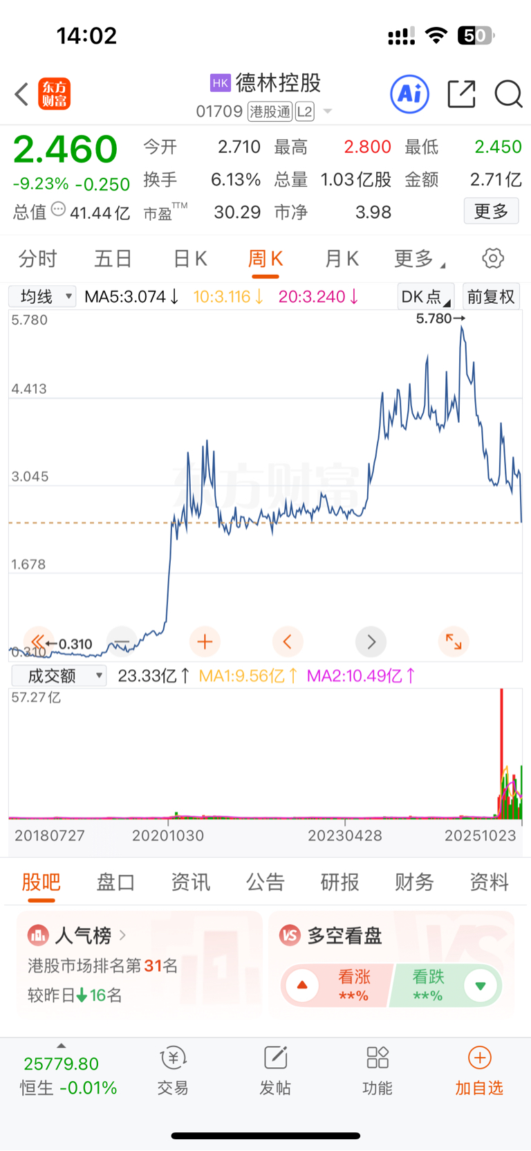 $德林控股(HK|01709)$ 随时可能像山高控股和昊天国际一样暴跌!看似最低价,其实在天上。。。