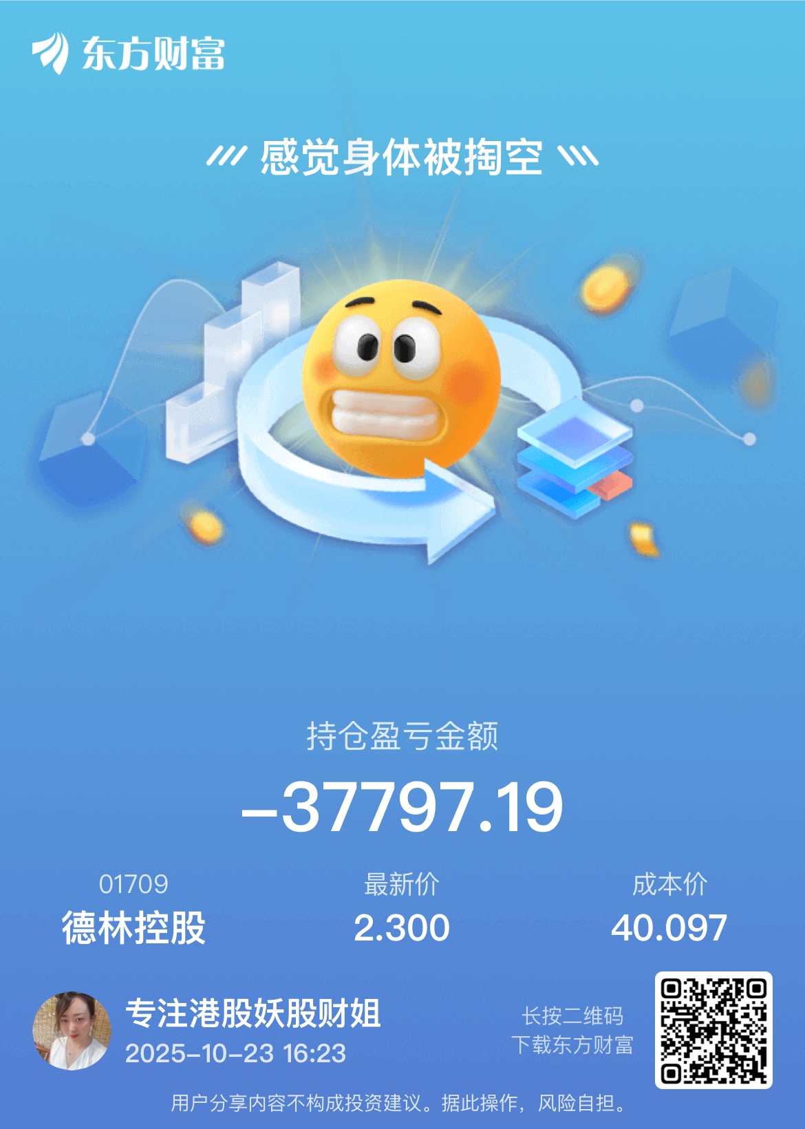 $德林控股(HK|01709)$ 老千股最好还是不要碰,啥时候割肉都是对的,留了一手看你退桶吧。。。