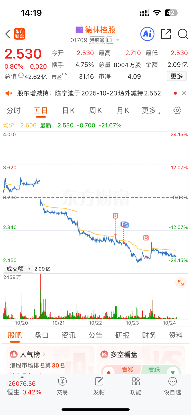 $德林控股(HK|01709)$ 真老千股真是不能格局。。。