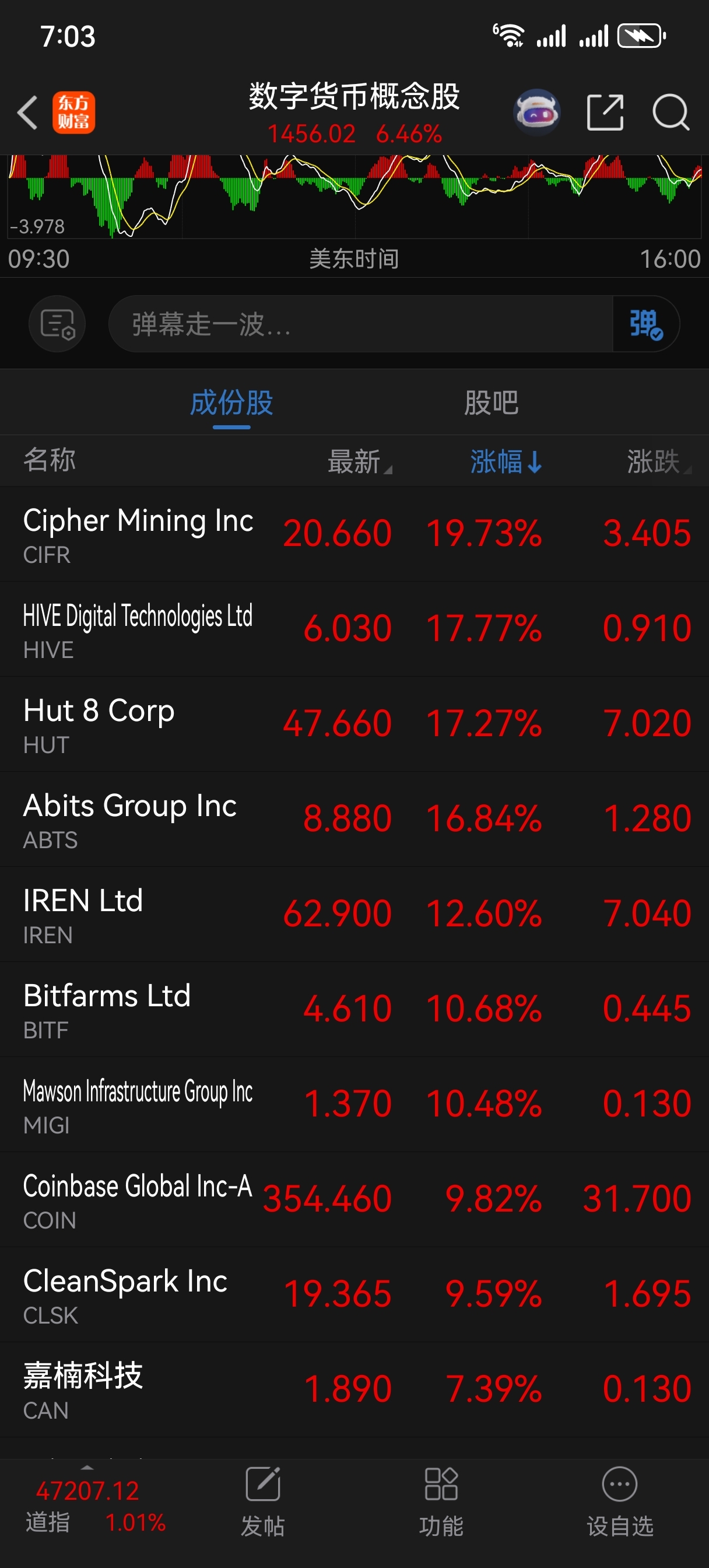 比特币屡创历史新高。美股加密货币概念股、美股挖矿企业股票大涨。