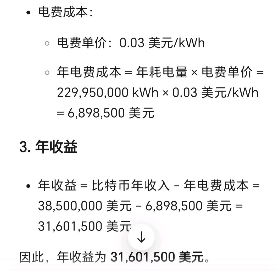 $德林控股(HK|01709)$ 电费成本取决于年收益的多少?如果按3美分,11万元每枚计算,年产量350枚比特币,收益约3000万美元。