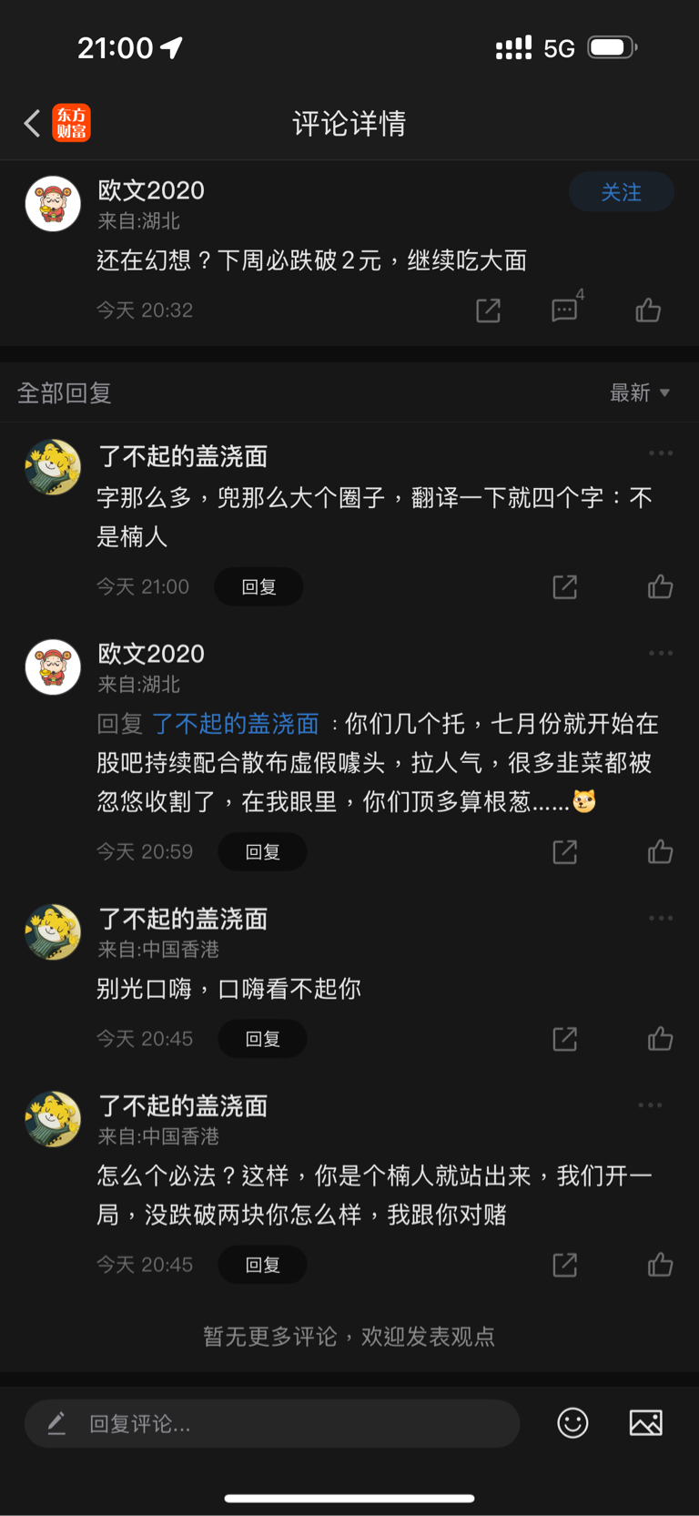 温馨提示: 1.根据《证券法》规定,禁止编造、传播虚假信息或者误导性信息,扰乱证券市场;2.用户在本社区发表的所有资料、言论等仅代表个人观点,与本网站立场无关,不对您构成任何投资建议。用户应基于自己的独立判断,自行决定证券投资并承担相应风险。《东方财富社区管理规定》