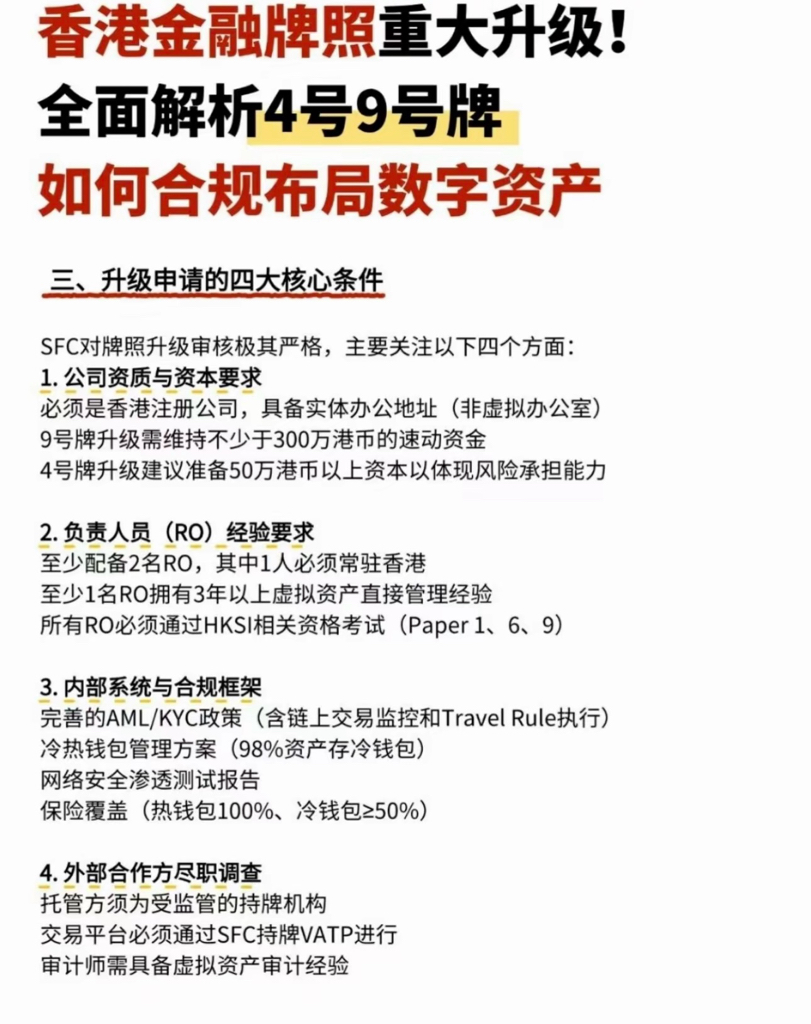 截至2025年11月1日,德林控股的1、4、9号牌照虚拟资产业务升级仍在审批中,未获最终批准,但进展符合预期。若10月底前无负面公告,升级落地的概率较大。