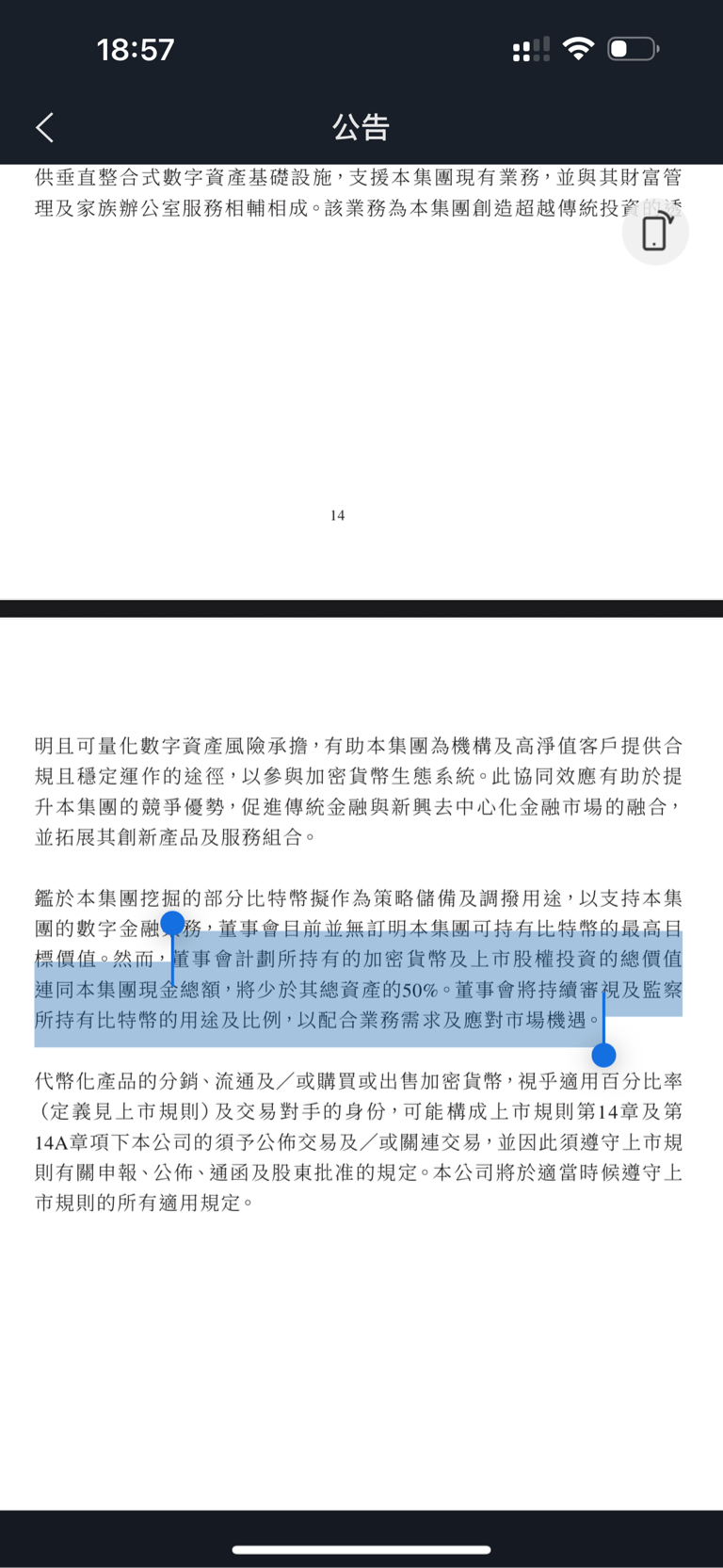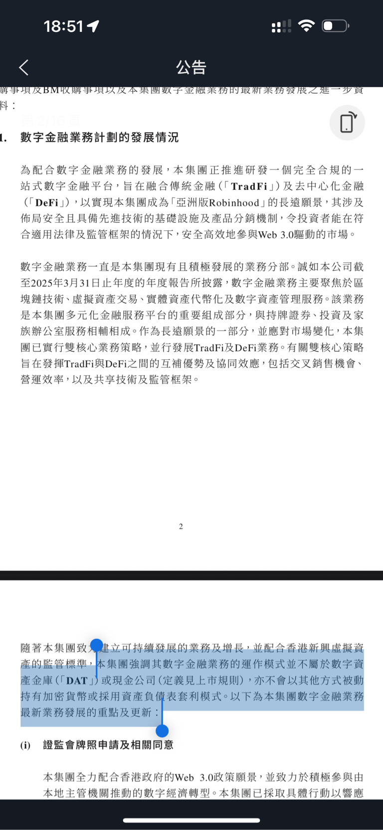 下文可见,他们投资加密货币不会超过总资产的50%,直接不属于DAT公司的定义:是一种将数位资产(如比特币)作为其核心策略资产的上市公司。所以由于德林最近被误认为DAT公司的错杀造成的股价下跌,一定会被市场和机构修正买回!