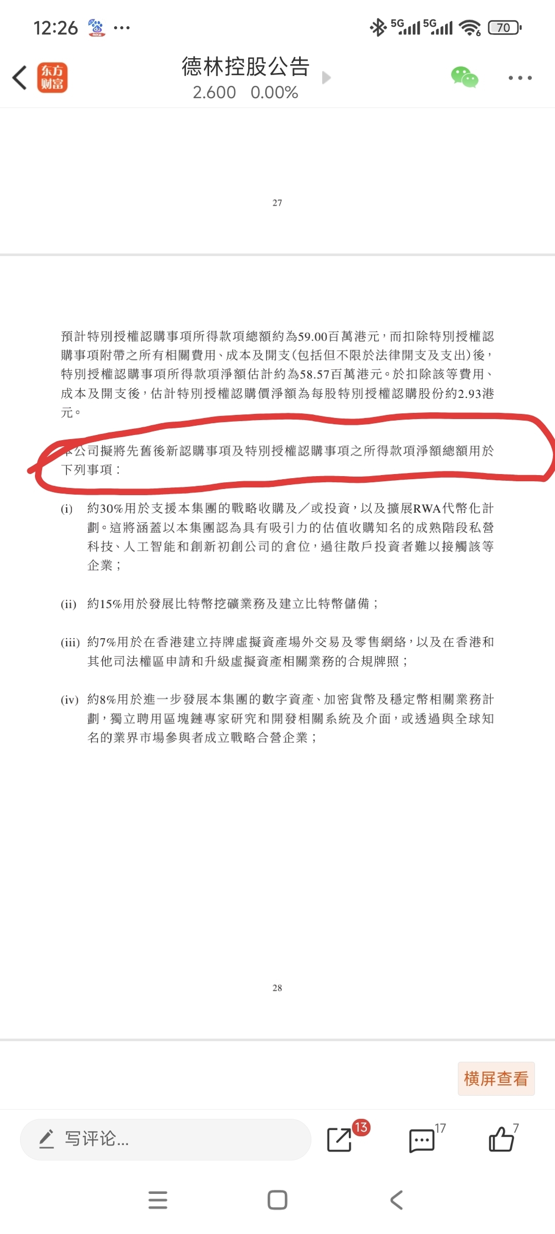$德林控股(HK|01709)$ 延期就是牌照没下来,自己看8月7日的公告。配股的钱要发展虚拟资产,所以前提是要有虚拟牌照。看图。
