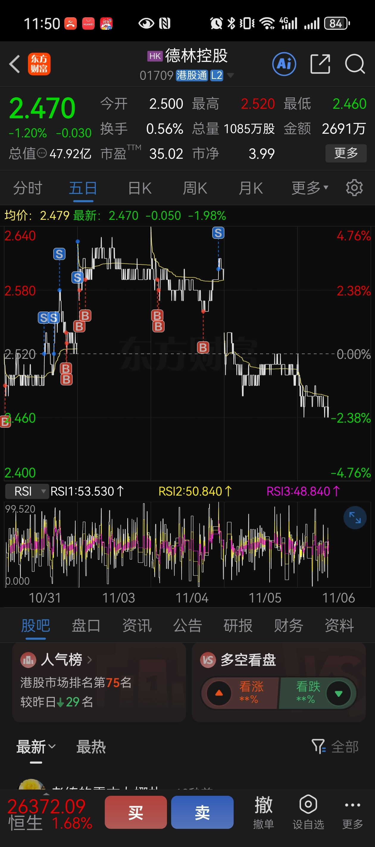 $德林控股(HK|01709)$ 上次卖出后留底仓,亏十几个点了