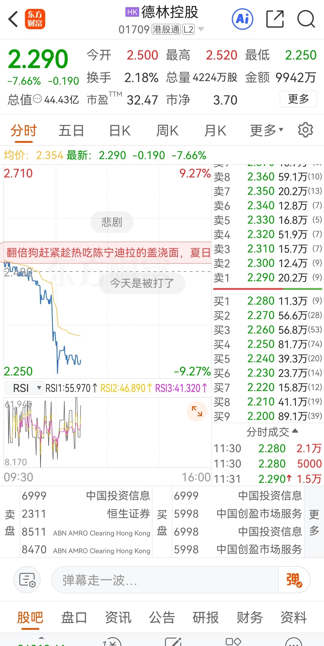 $德林控股(HK|01709)$ 迪子还是想稳股价保港股通的,不然也不会小连招不断,奈何公司本身体量小,新业务受监管政策影响大,落地进度不及预期,短期内又配售17亿,市场认不认可股价表现说明一切,牌照升级成功反弹高度恐怕也得打个?