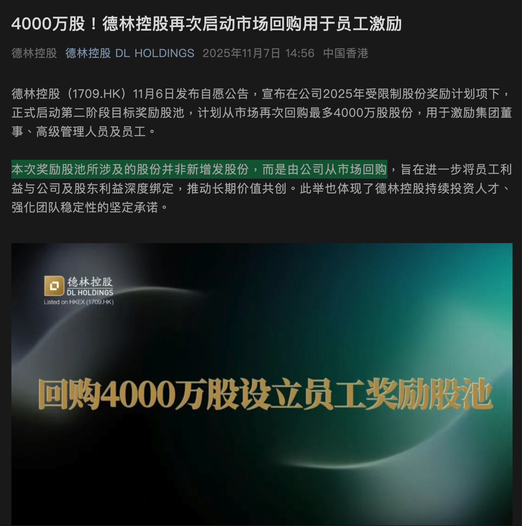 $德林控股(HK|01709)$ 4000万老股回购现在可以进场买了吧!