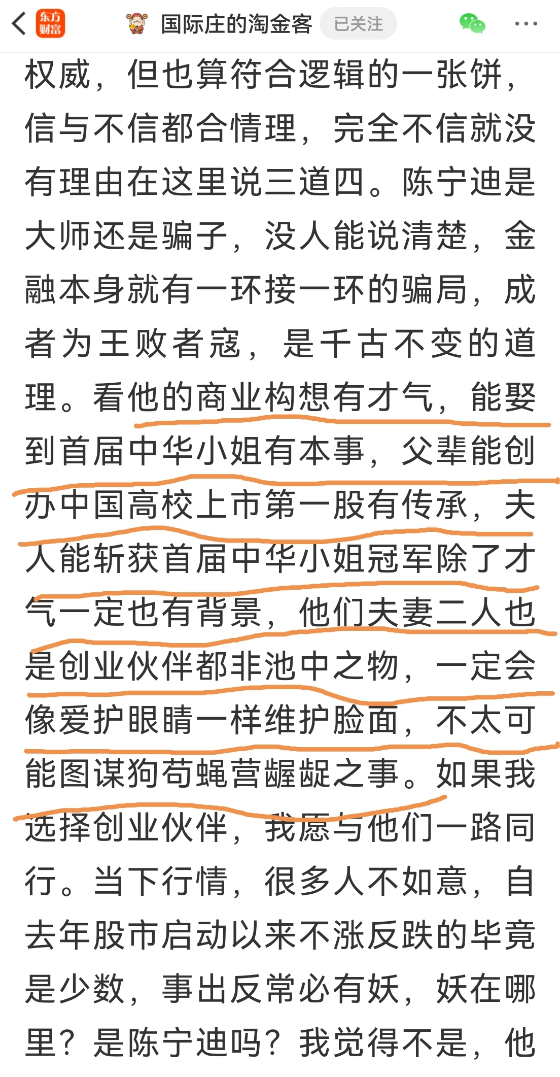 觉得吧友的这一段扒得挺好的。人靠谱,公司就靠谱,公司和人靠谱,股价的波动就不用太