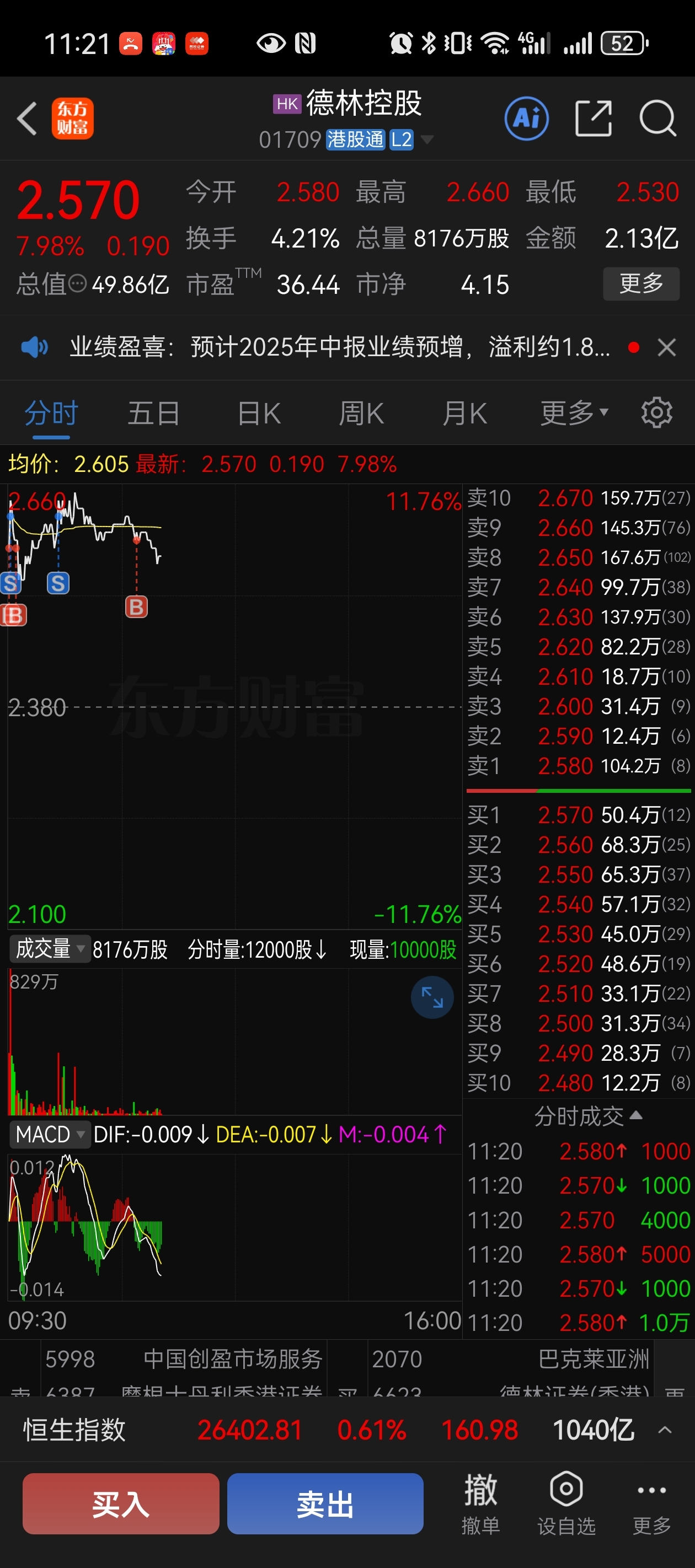 $德林控股(HK|01709)$ 今天就这样了吧,非暴涨暴跌不操作了,离成本线只有几分钱了,太过频繁操作我怕给港交所奉献太多