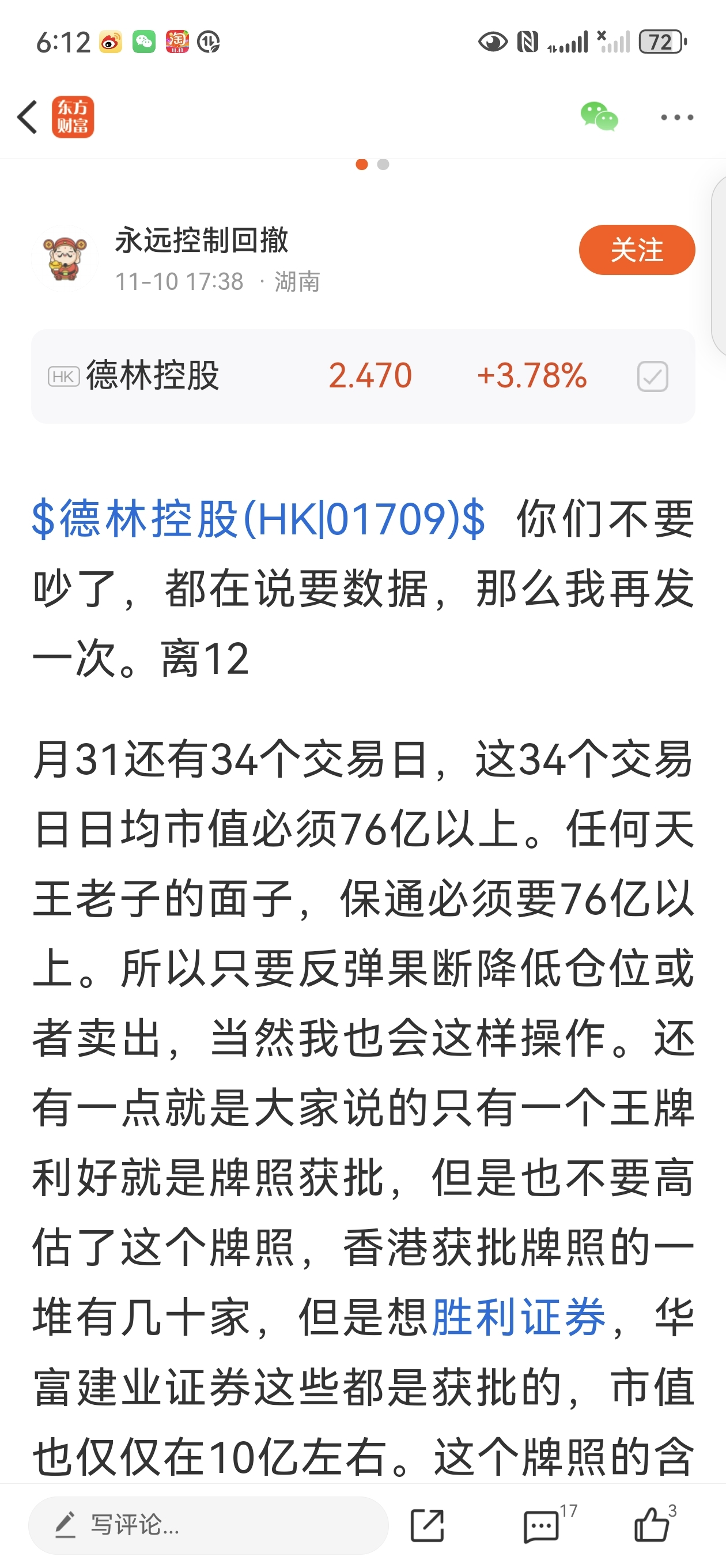 $德林控股(HK|01709)$ 不要把首次加入港股通的考察指标,混为退通的要求!此股暂无退通风险!~亏钱只是暂时的,虽然大家都比较郁闷,不懂不要乱讲~混淆视听~