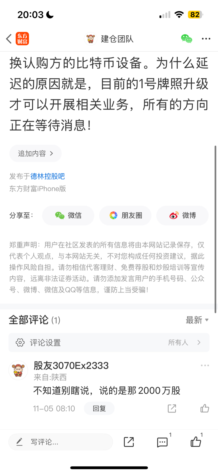 温馨提示: 1.根据《证券法》规定,禁止编造、传播虚假信息或者误导性信息,扰乱证券市场;2.用户在本社区发表的所有资料、言论等仅代表个人观点,与本网站立场无关,不对您构成任何投资建议。用户应基于自己的独立判断,自行决定证券投资并承担相应风险。《东方财富社区管理规定》