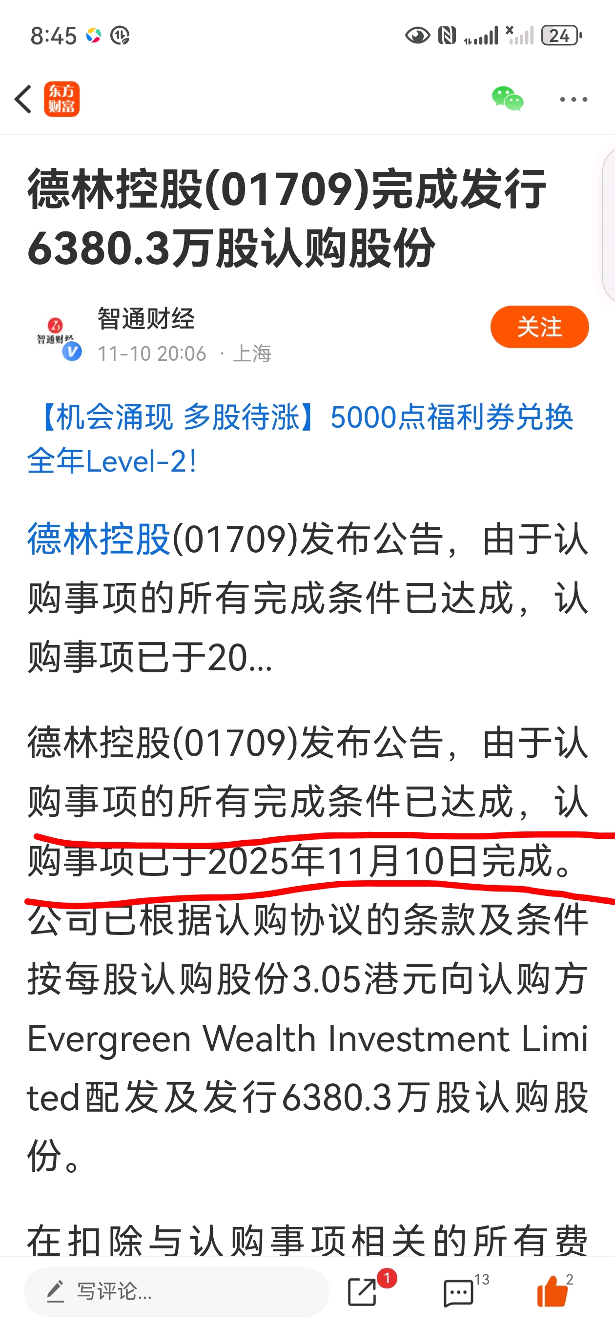 $德林控股(HK|01709)$ 牌照升级成功条件就是有牌照,才可以弄购完成~那么是不是意味着升级成功了~