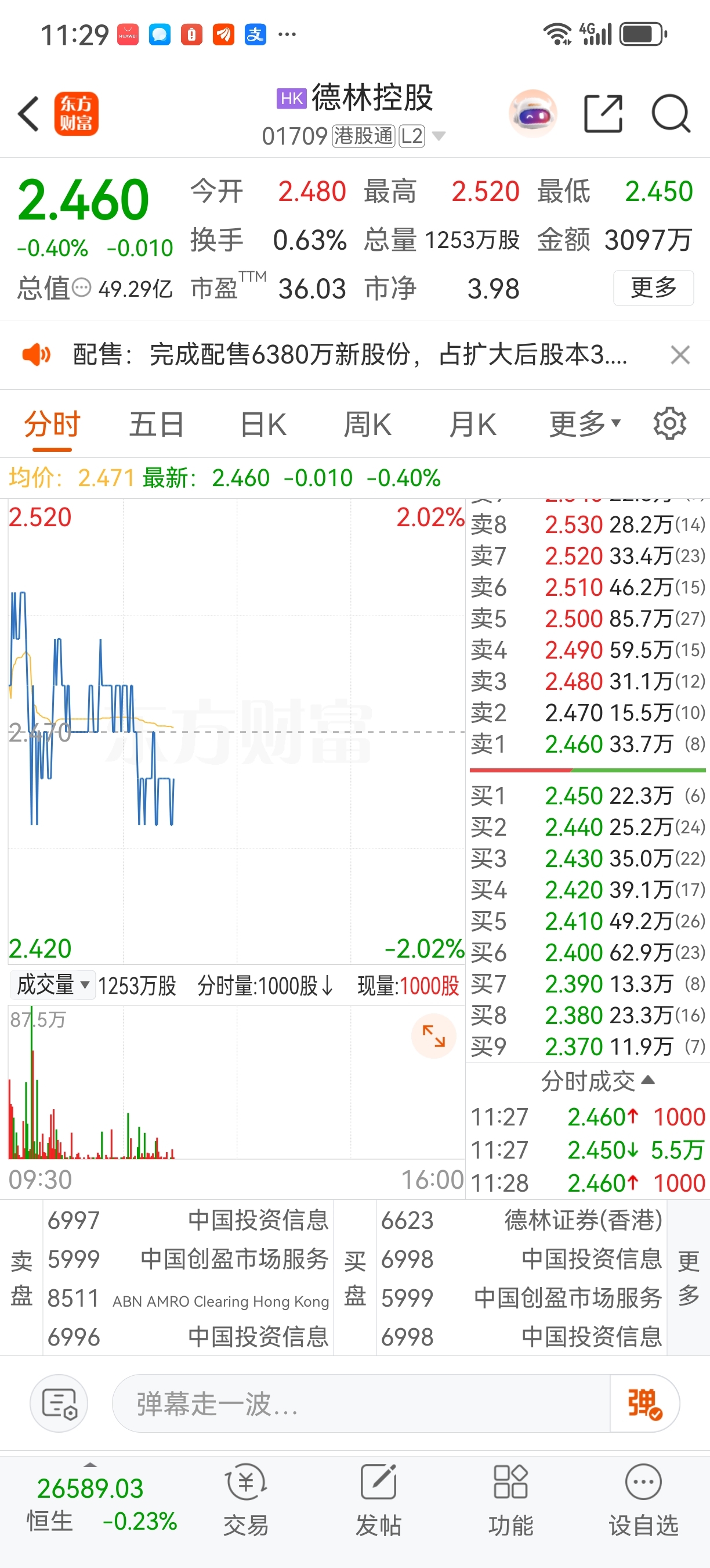 $德林控股(HK|01709)$ 德林证券自己的账户开始操作了在买单一那边