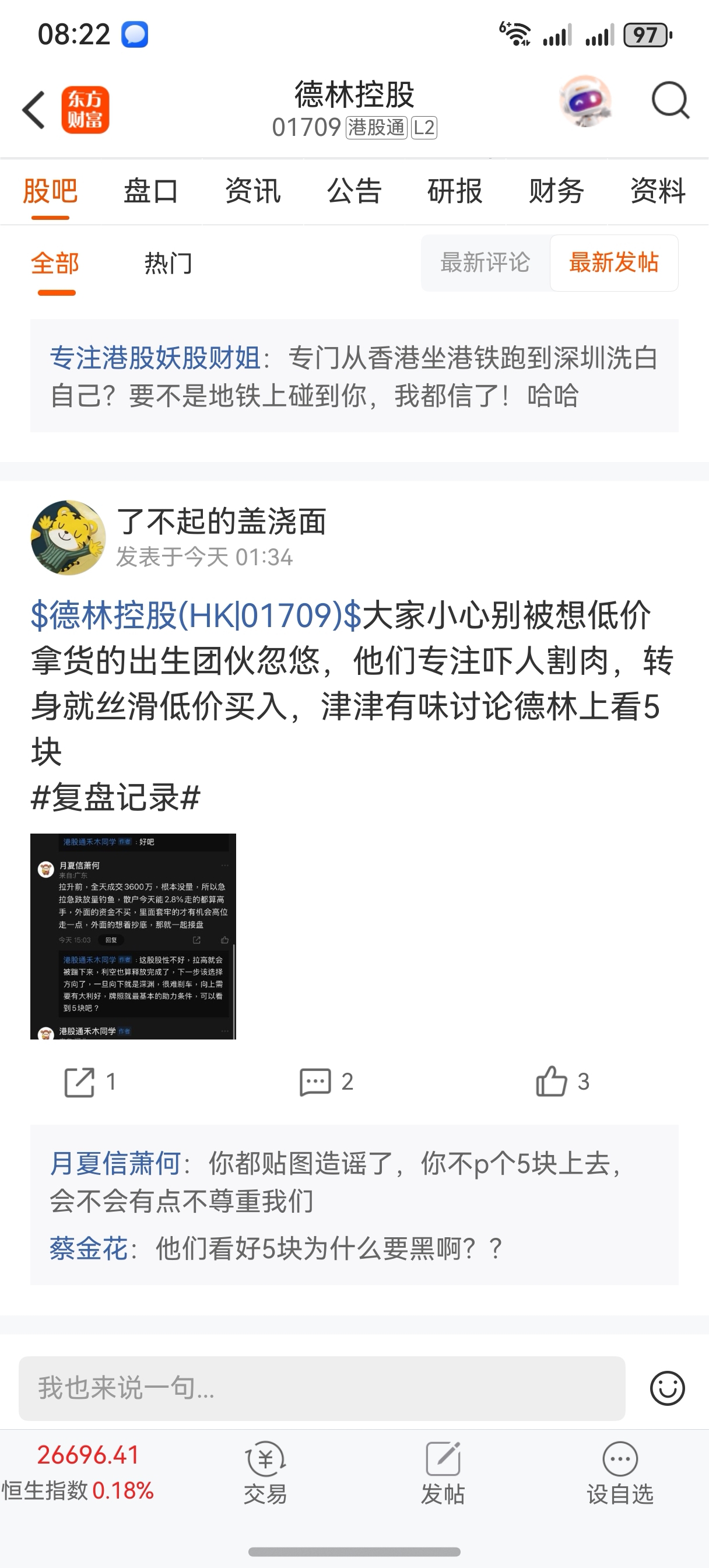 $德林控股(HK|01709)$ 主力多次提醒今天要出货,本周没有牌照,见机行事。