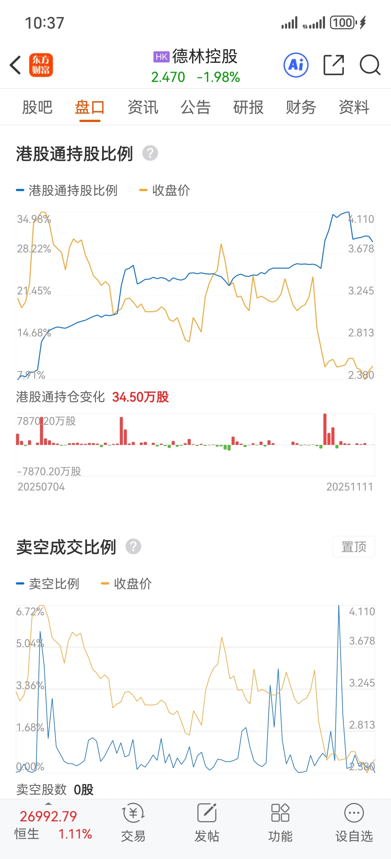 自己看经纪商不看好,港股通也在减仓,卖空成交量也是最低点,这个股目前最适合做空,