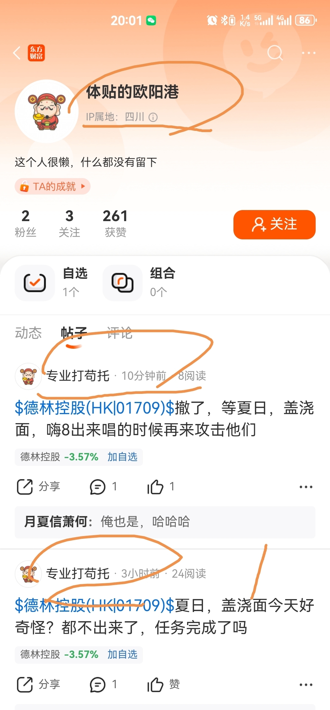 $德林控股(HK|01709)$ 又换了马甲,下面的帖子还没来得及同步。能解释下为什么频繁换马甲吗?换新苟设?有什么见不得人的事?还是仅仅是藏得更深?。。。。。。