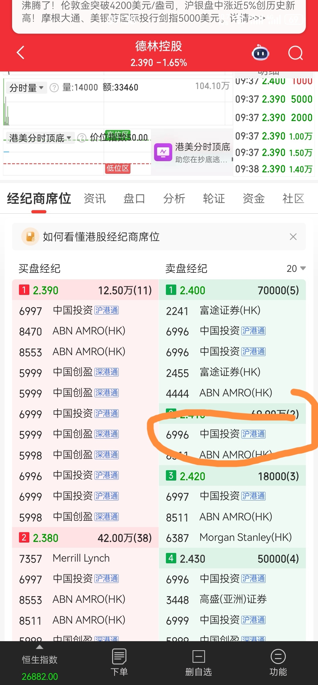 $德林控股(HK|01709)$ 你们叫呀,这一笔71万就是港股通资金,你当主力不看股吧不知道你们一天天的叭叭,
