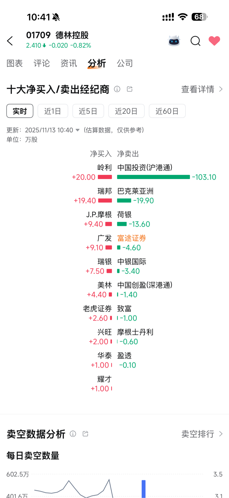 $德林控股(HK|01709)$ 牌照下发前港股通被苟托们忽忽悠悠卖光了