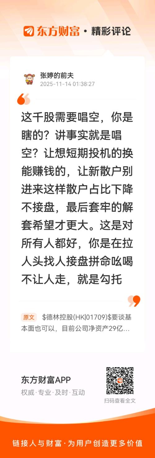 //@张婷的前夫 :这千股需要唱空,你是瞎的?讲事实就是唱空?让想短期投机的换能赚钱的,让新散户别进来这样散户占比下降不接盘,最后套牢的解套希望才更大。这是对所有人都好,你是在拉人头找人接盘拼命吆喝不让人走,就是勾托