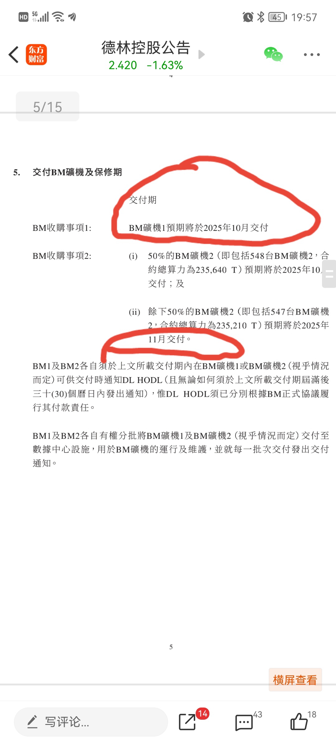 $德林控股(HK|01709)$ 公告说好了,10月底交付矿机,按理说,比特币应该有7-8个吧,然而,什么都没有吗?一切都是买的空气?