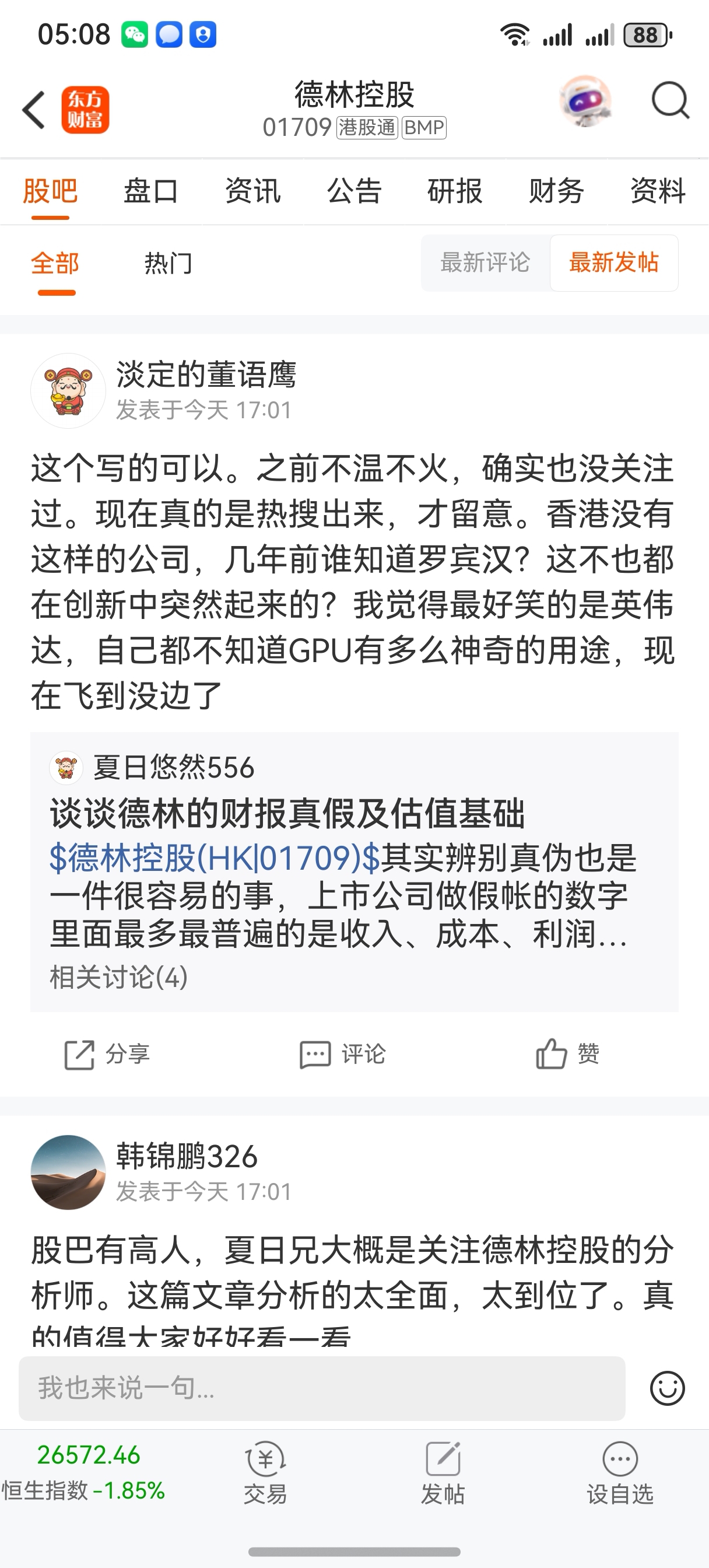 $德林控股(HK|01709)$ 这个业绩应该有很大程度是计提的吧,这样的话年报不一定会亮眼,对业绩没什么反应主要是持续性的问题,如果收入真的是4亿,利润还那么高的话,这股价得起飞,所以主要是持续性不行,如果没有计提部分有那么多就牛逼了。