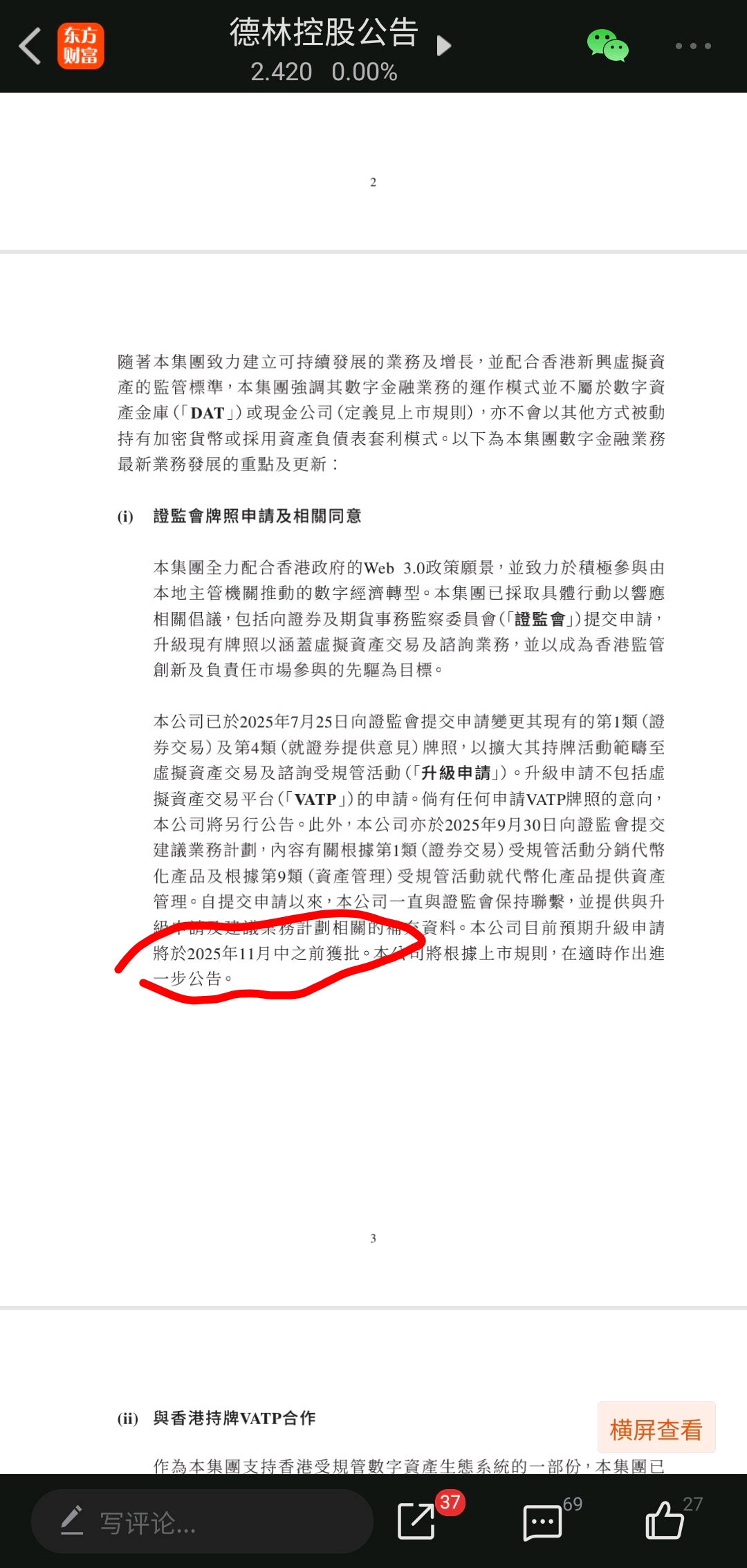 $德林控股(HK|01709)$ 公告写的11月中之前,通俗的讲就是15号之前算11月中之前,如果是11月中旬之前,那么指的是11号之前,11月下旬之前,指的是21号之前,11月下旬指的是21-30/31号期间,麻烦姓陈的狗腿子给你们主人普及一下这个表述