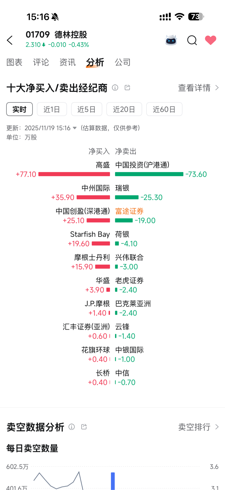 $德林控股(HK|01709)$ 港股通悉数清仓,外资全面入驻,牌照估计真要来了