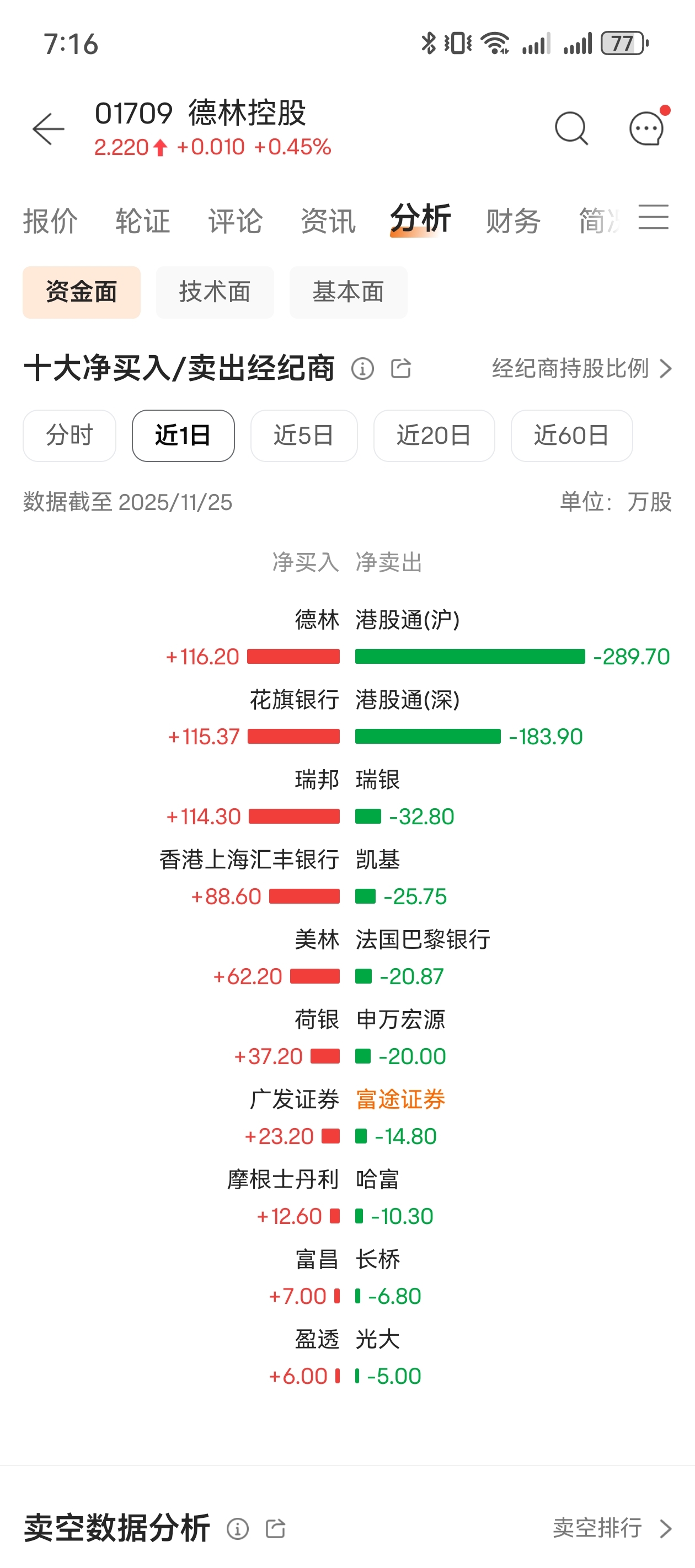 $德林控股(HK|01709)$ 21号那天不少港股通割肉,今天希望再多砸点出来