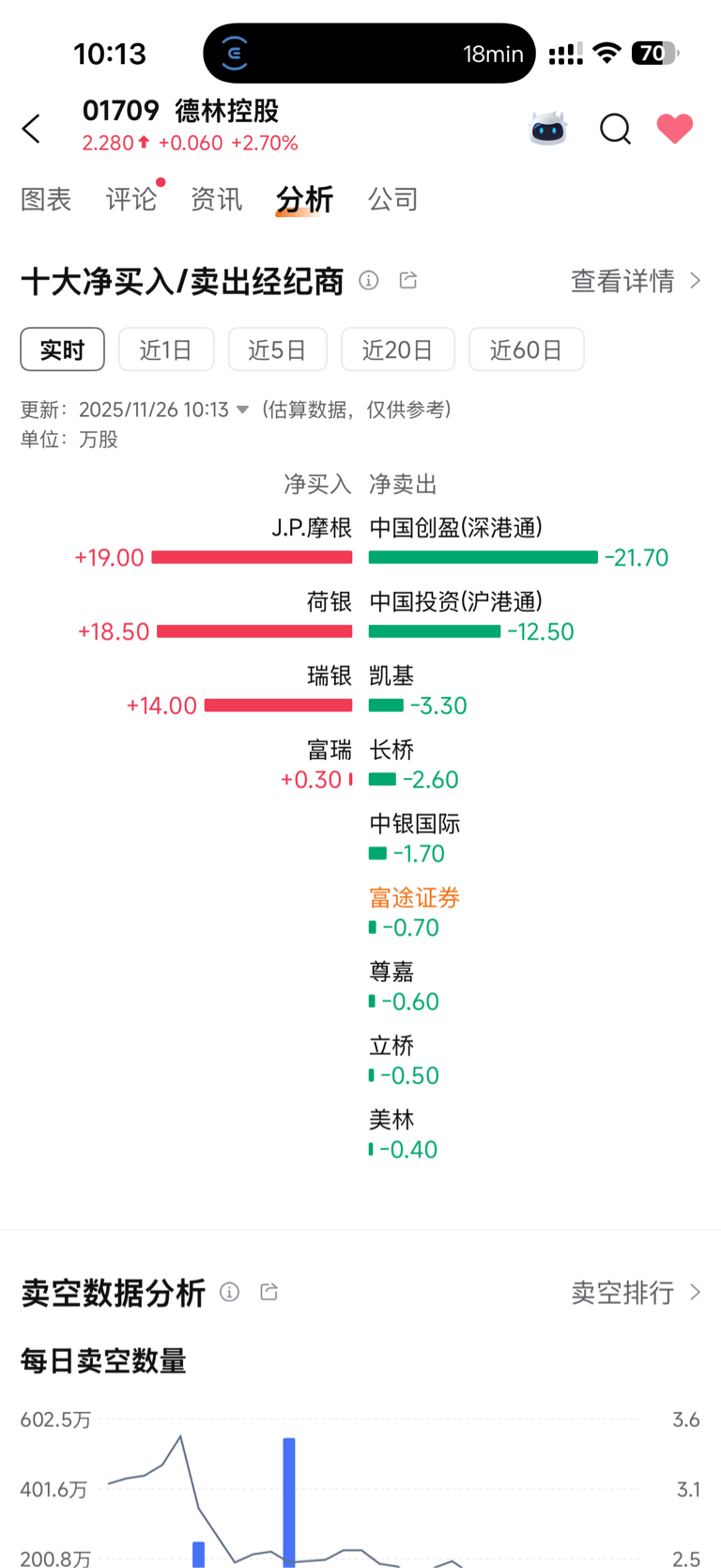$德林控股(HK|01709)$ 终于都gun了,港股通比例也下来了