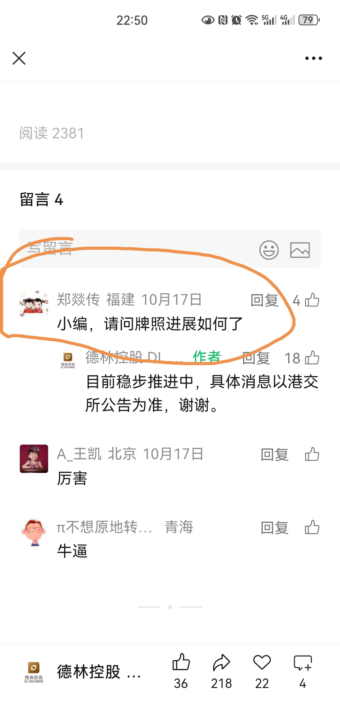 $德林控股(HK|01709)$ @卖你黑药 给你看张图,老韭菜应该都记得,这个10月17日询问牌照的就是他喽,配合的怎么样?这一轮配合下来紧接着就是10亿配售。