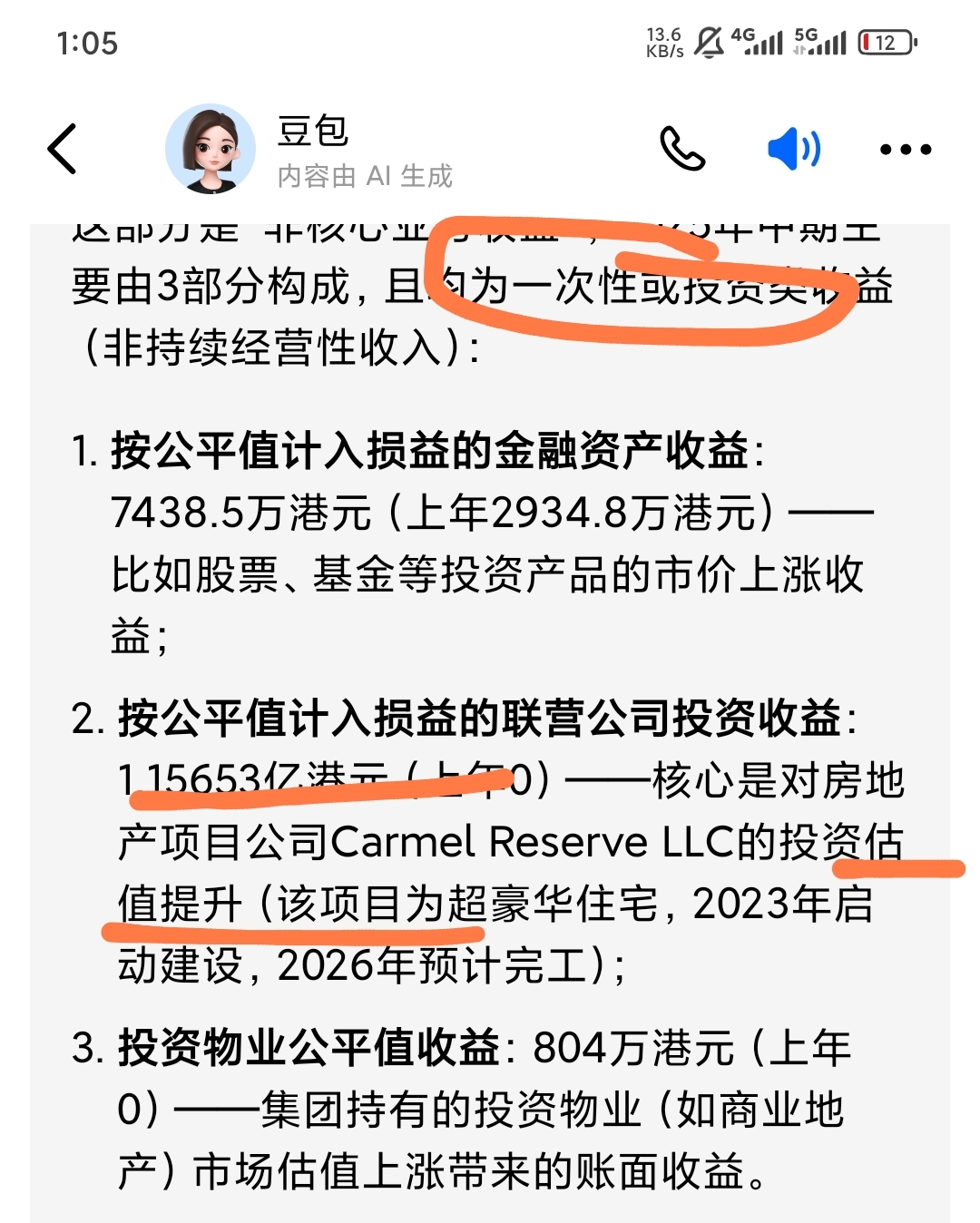 $德林控股(HK|01709)$ 利润比营收还高,看了下,我觉得更加做实了老千股。首先这份中报是未经审核的,也是没有去找外部的会计核数师,而是公司内部的财务团队和这个董事会发布的;然后其次很多的收益都是一次性的,特别是这个对于豪宅项目的估值提升,这个东西猫腻太大了。可能股价会涨,到这种票的结局,无一不是价值毁灭。