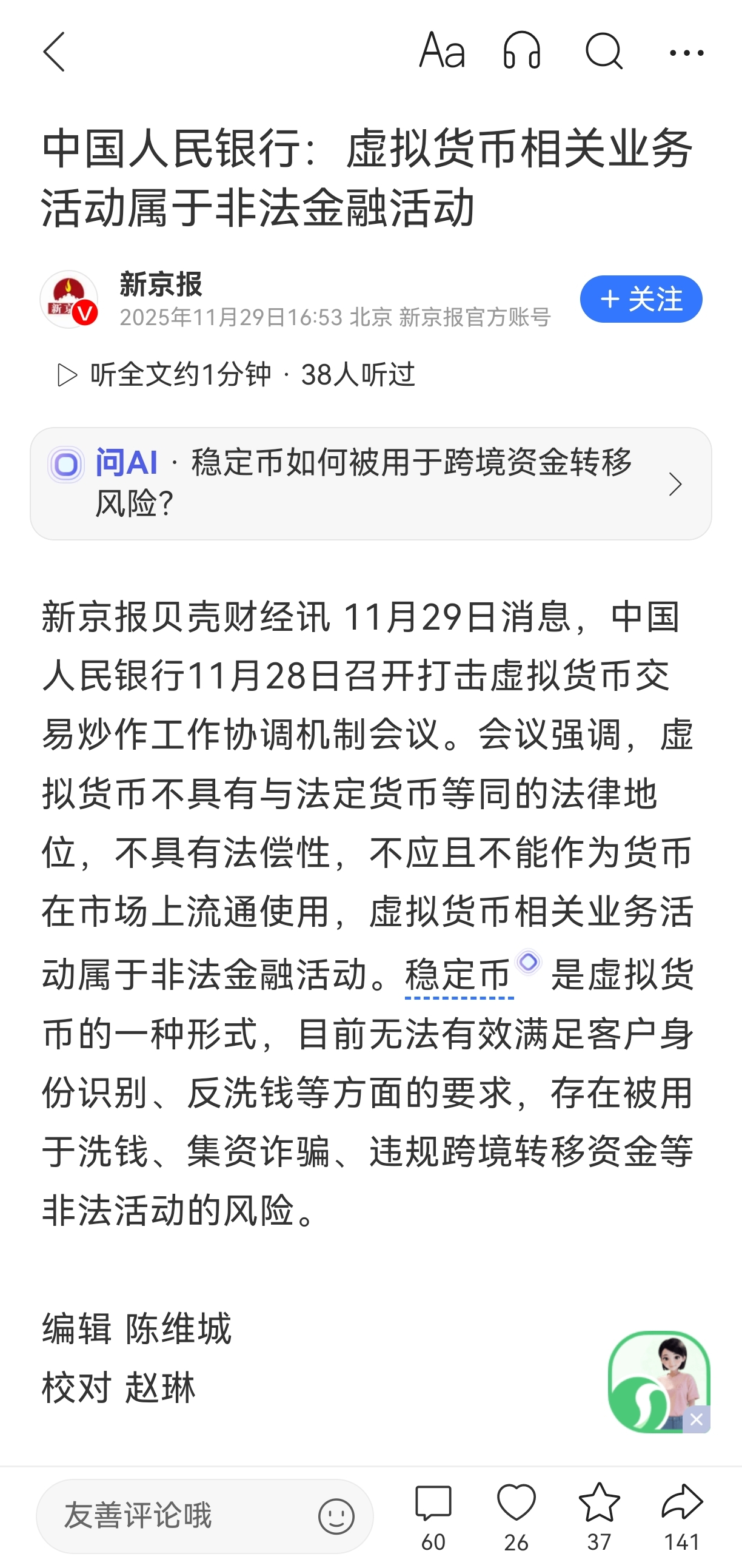 这件事情暂时来说我觉得是阻拦内资对稳定币的想法,只能说对香港暂不涉及,就看港如何解读和后续政策的方向,不管如何,德林没有申请稳定币是正确的