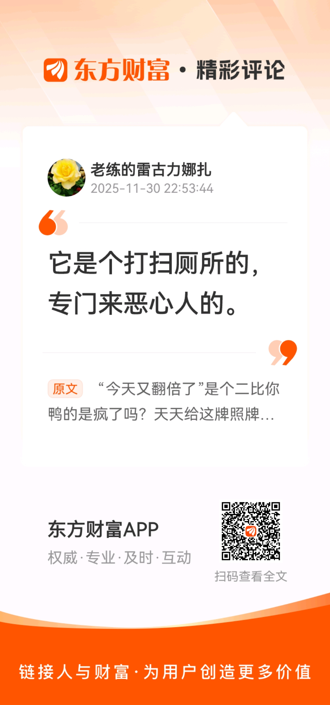 温馨提示: 1.根据《证券法》规定,禁止编造、传播虚假信息或者误导性信息,扰乱证券市场;2.用户在本社区发表的所有资料、言论等仅代表个人观点,与本网站立场无关,不对您构成任何投资建议。用户应基于自己的独立判断,自行决定证券投资并承担相应风险。《东方财富社区管理规定》