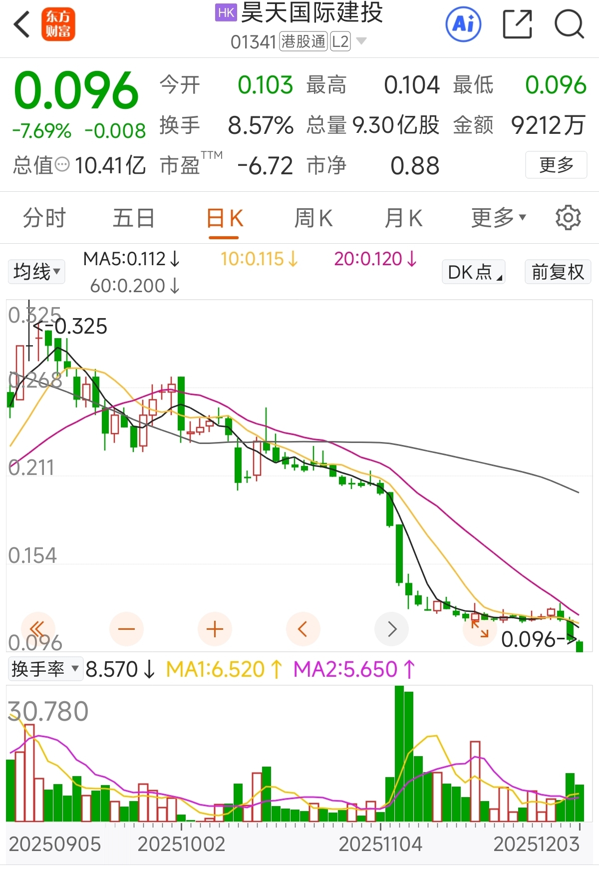 崆枸们再看看你们钟爱的昊天。9月份以来的走势,三个月,跌的只剩1/3不到了。